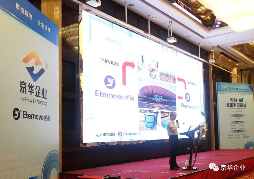 在接下來的一小時時間里,京華企業(yè)“恒新“品牌營銷副總李明曄先生,從企業(yè)實力和品牌定位,新型鋅鋁鎂基材以及全系列”恒新“彩涂產(chǎn)品線,”恒新“產(chǎn)品定制服務三方面向與會嘉賓做了全面的講解,全方位立體化向大家詳細闡述了”恒新“產(chǎn)品解決方案的獨特價值,以創(chuàng)新設計理念,幫助綠色建筑的節(jié)材,節(jié)水,節(jié)能,提升環(huán)境舒適度等各方面達成極大提升,以綠色理念幫助廣大客戶實現(xiàn)彩涂產(chǎn)品銷量的可持續(xù)增長。